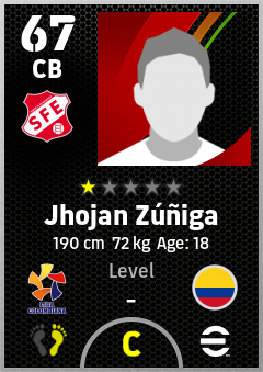. Jhojan Zúñiga is a Center Back footballer from Colombia who plays for Santa Fe De Bogotá R in eFootball 2026.