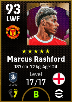 .Marcus Rashford is a Left Wing Forward footballer from England who plays for Manchester United in eFootball 2026.