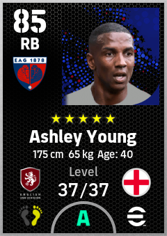. Ashley Young is a Right Back footballer from England who plays for Ipswich Bw in eFootball 2026.