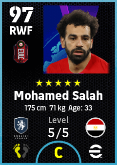 . Mohamed Salah is a Right Wing Forward footballer from Egypt who plays for Liverpool R in eFootball 2026.