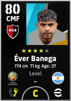 . Éver Banega is a Center Midfielder footballer from Argentina who plays for Rosario Rn in eFootball 2026.
