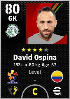 . David Ospina is a Goalkeeper footballer from Colombia who plays for Medellín V in eFootball 2026.
