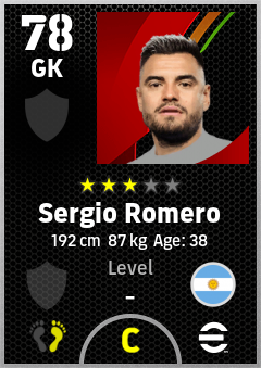 . Sergio Romero is a Goalkeeper footballer from Argentina who plays for Free in eFootball 2026.