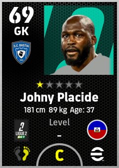 . Johny Placide is a Goalkeeper footballer from Haiti who plays for Sc Bastia in eFootball 2026.
