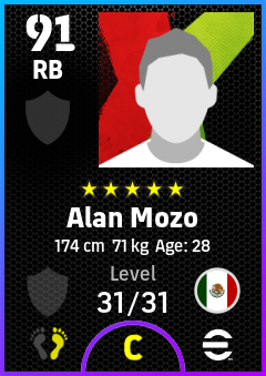 .Alan Mozo is a Right Back footballer from Mexico who plays for Free in eFootball 2026.