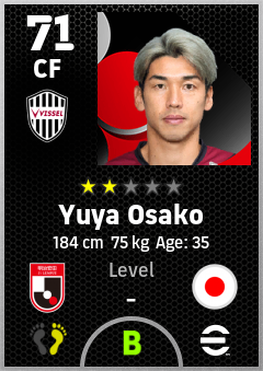 . Yuya Osako is a Center Forward footballer from Japan who plays for Vissel Kobe in eFootball 2026.