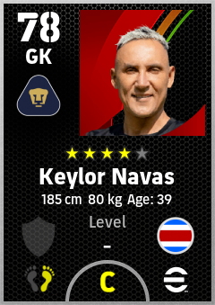 . Keylor Navas is a Goalkeeper footballer from Costa Rica who plays for Pumas in eFootball 2026.