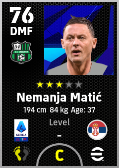 . Nemanja Matić is a Defensive Midfielder footballer from Serbia who plays for Sassuolo Nv in eFootball 2026.