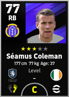 . Séamus Coleman is a Right Back footballer from Republic Of Ireland who plays for Everton B in eFootball 2026.