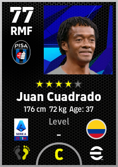 . Juan Cuadrado is a Right Midfielder footballer from Colombia who plays for Pisa Sporting Club in eFootball 2026.