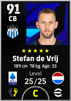 .Stefan De Vrij is a Center Back footballer from Netherlands who plays for Internazionale Milano in eFootball 2026.