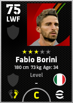 . Fabio Borini is a Left Wing Forward footballer from Italy who plays for Free in eFootball 2026.