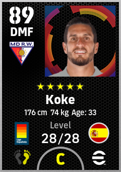 . Koke is a Defensive Midfielder footballer from Spain who plays for Madrid Rosas Rb in eFootball 2026.