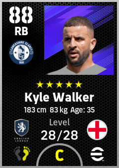 . Kyle Walker is a Right Back footballer from England who plays for Burnley Rb in eFootball 2026.
