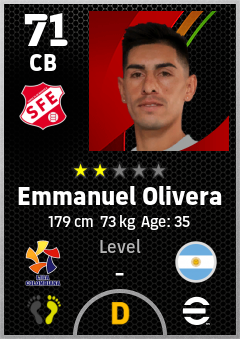. Emmanuel Olivera is a Center Back footballer from Argentina who plays for Santa Fe De Bogotá R in eFootball 2026.