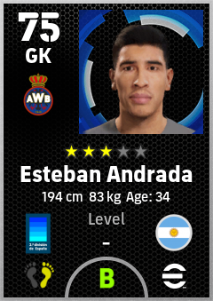 . Esteban Andrada is a Goalkeeper footballer from Argentina who plays for Zaragoza Ba in eFootball 2026.