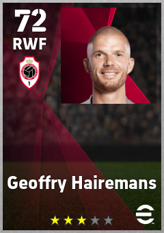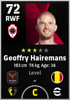 . Geoffry Hairemans is a Right Wing Forward footballer from Belgium who plays for Antwerp Rw in eFootball 2026.