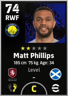 . Matt Phillips is a Right Wing Forward footballer from Scotland who plays for Oxford By in eFootball 2026.