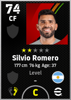 . Silvio Romero is a Center Forward footballer from Argentina who plays for Free in eFootball 2026.