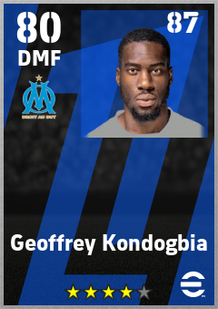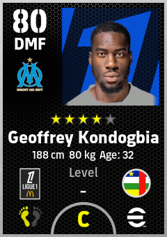 . Geoffrey Kondogbia is a Defensive Midfielder footballer from Central African Rep. who plays for Olympique De Marseille in eFootball 2026.