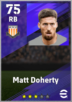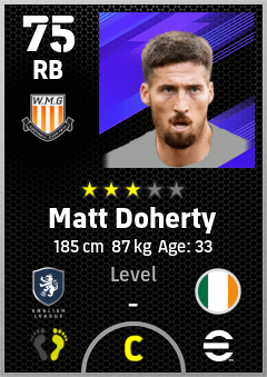 . Matt Doherty is a Right Back footballer from Republic Of Ireland who plays for Wolverhampton Yb in eFootball 2026.
