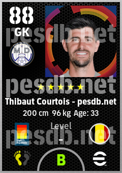 . Thibaut Courtois is a Goalkeeper footballer from Belgium who plays for Madrid Chamartin B in eFootball 2026.
