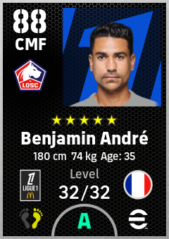 . Benjamin André is a Center Midfielder footballer from France who plays for Losc Lille in eFootball 2026.