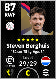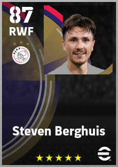 .Steven Berghuis is a Right Wing Forward footballer from Netherlands who plays for Ajax in eFootball 2026.