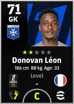 . Donovan Léon is a Goalkeeper footballer from France who plays for Aj Auxerre in eFootball 2026.