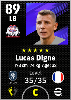 . Lucas Digne is a Left Back footballer from France who plays for Aston Rb in eFootball 2026.
