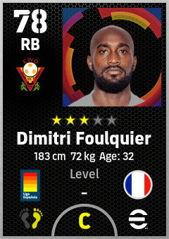 . Dimitri Foulquier is a Right Back footballer from France who plays for Valencia Bn in eFootball 2026.