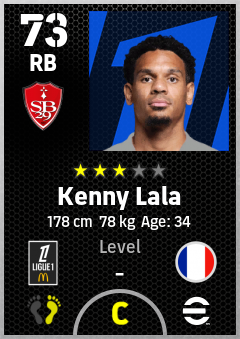 . Kenny Lala is a Right Back footballer from France who plays for Stade Brestois 29 in eFootball 2026.