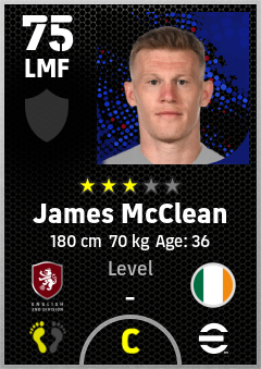 . James Mcclean is a Left Midfielder footballer from Republic Of Ireland who plays for Wrexham Rw in eFootball 2026.
