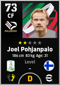 . Joel Pohjanpalo is a Center Forward footballer from Finland who plays for Palermo Rn in eFootball 2026.