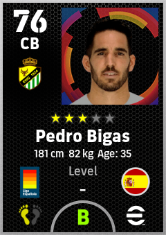 . Pedro Bigas is a Center Back footballer from Spain who plays for Elche Bv in eFootball 2026.
