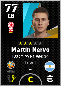 . Martín Nervo is a Center Back footballer from Argentina who plays for Parque Patricios R in eFootball 2026.