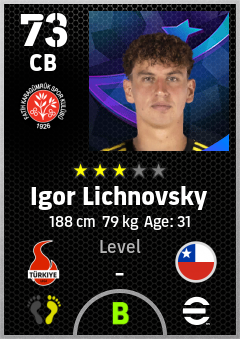 . Igor Lichnovsky is a Center Back footballer from Chile who plays for Fatih Karagümrük Sk in eFootball 2026.