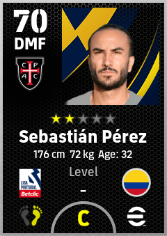 . Sebastián Pérez is a Defensive Midfielder footballer from Colombia who plays for Casa Pia Ac in eFootball 2026.