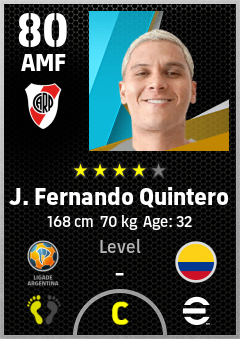 . J. Fernando Quintero is a Attacking Midfielder footballer from Colombia who plays for Ca River Plate in eFootball 2026.