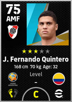 . J. Fernando Quintero is a Attacking Midfielder footballer from Colombia who plays for Ca River Plate in eFootball 2026.
