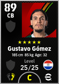 .Gustavo Gómez is a Center Back footballer from Paraguay who plays for Free in eFootball 2026.