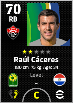 . Raúl Cáceres is a Right Back footballer from Paraguay who plays for Ec Vitória in eFootball 2026.