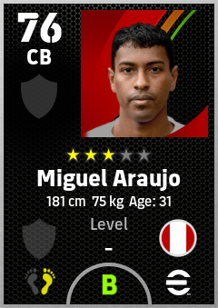 . Miguel Araujo is a Center Back footballer from Peru who plays for Free in eFootball 2026.