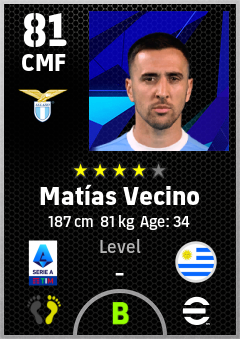 . Matías Vecino is a Center Midfielder footballer from Uruguay who plays for S.s. Lazio in eFootball 2026.