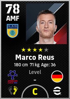 . Marco Reus is a Attacking Midfielder footballer from Germany who plays for Los Angeles Wby in eFootball 2026.