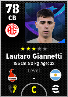 . Lautaro Giannetti is a Center Back footballer from Argentina who plays for Antalyaspor in eFootball 2026.