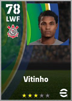 . Vitinho is a Left Wing Forward footballer from Brazil who plays for Sc Corinthians Paulista in eFootball 2026.
