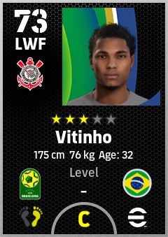 . Vitinho is a Left Wing Forward footballer from Brazil who plays for Sc Corinthians Paulista in eFootball 2026.