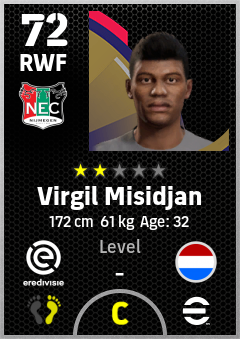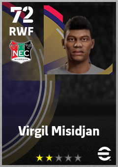 . Virgil Misidjan is a Right Wing Forward footballer from Netherlands who plays for N.e.c. Nijmegen in eFootball 2026.