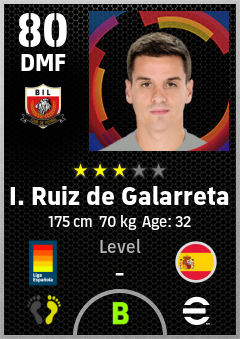 . I. Ruiz De Galarreta is a Defensive Midfielder footballer from Spain who plays for Bilbao Br in eFootball 2026.